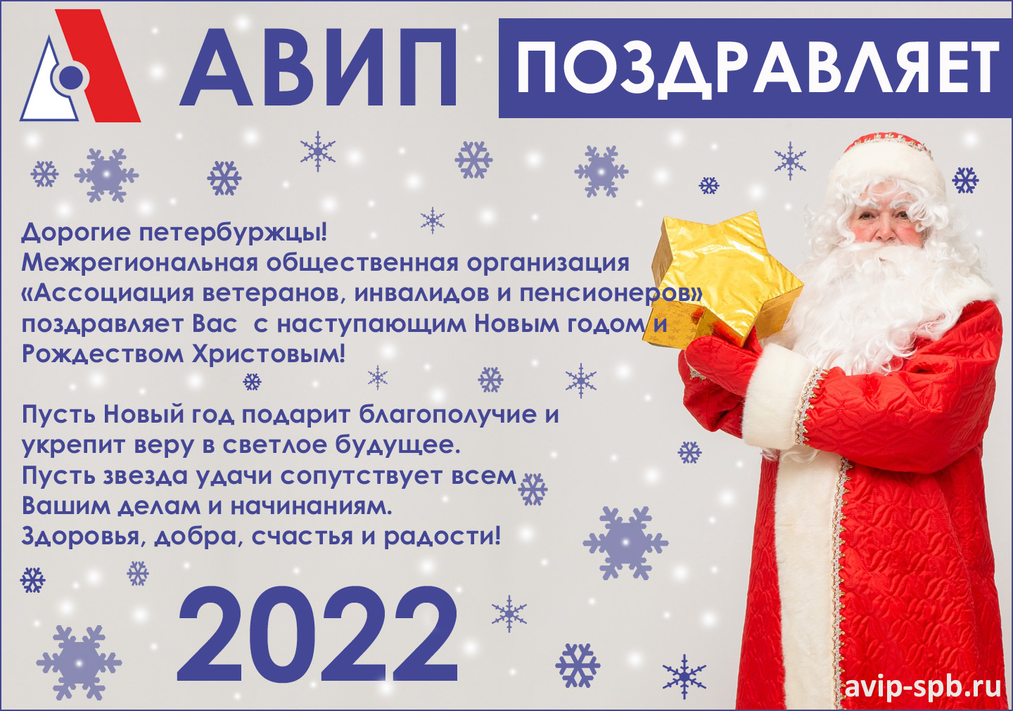 Межрегиональная общественная организация"Ассоциация ветеранов, инвалидов и пенсионеров" поздравляет участников своих проектов, получателей услуг, партнеров и друзей с наступающим Новым годом и Рождеством Христовым! Пусть 2022 год подарит благополучие и укрепит веру в светлое будущее!